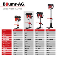 Baumr-AG delivers market leading excellence in a whole range of workshop power equipment. The DP15 Drill Press offers a convenient, compact and dependable drilling solution to an endless list of projects.