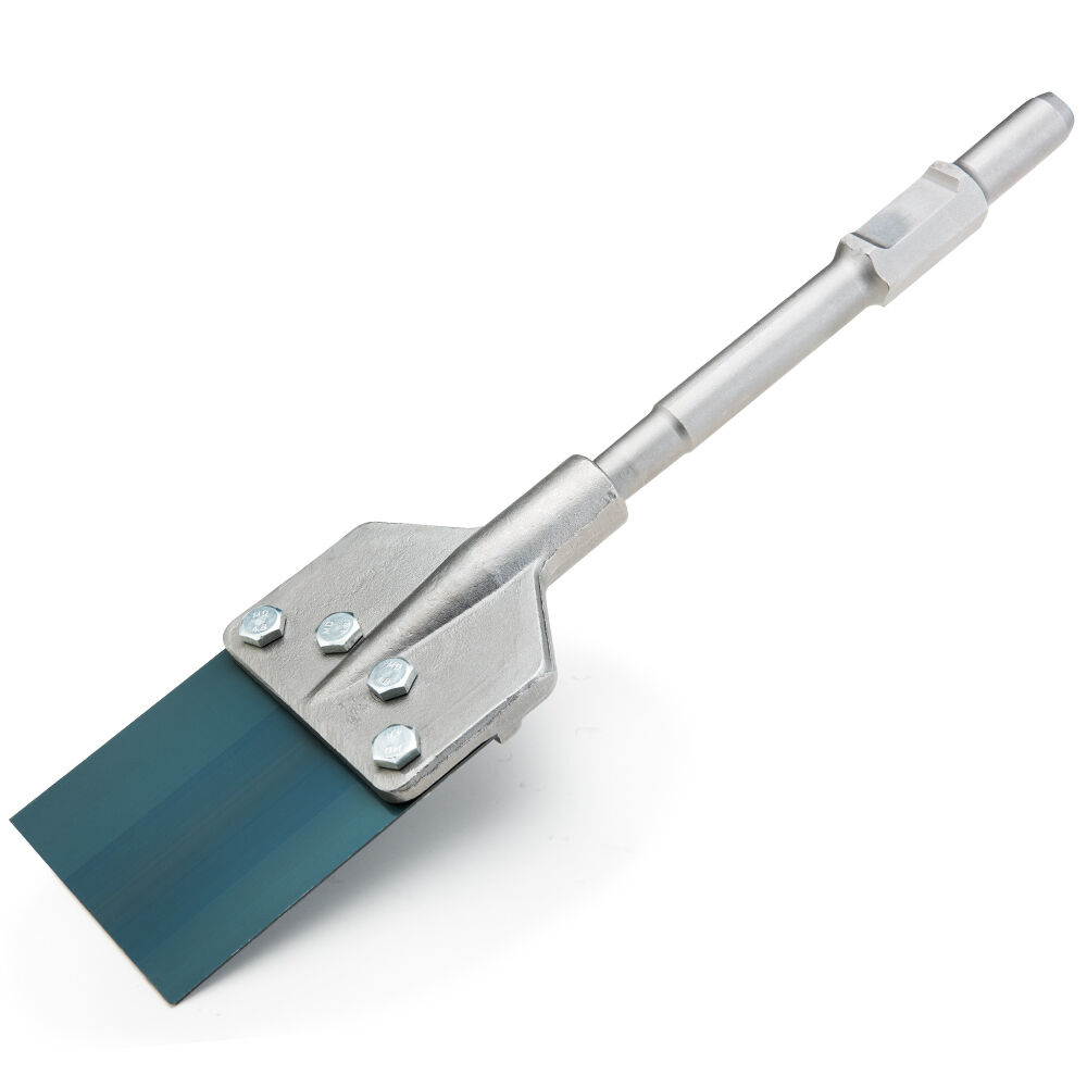 Don't break your body trying to remove old flooring surfaces from tricky adhesive and stubborn mortar with manual floor scraping tools. This chisel will do the job in a fraction of the time. Its perfect for removing slate, tiles, vinyl, lino and eco-flooring with force and precision. The flexible steel tip naturally allows the blade to get underneath the flooring material and separate it from the surface.