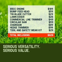$362.83Loaded with no less than seven attachments, including an exclusive tungsten tipped carbide alloy blade, the SMX720 65cc Multi Pro-Series is the ultimate gardening machine. Adjust the extension pole and tackle those hard to reach branches with the class-leading power of its 65cc engine and super responsive direction air injection carburettor. Add to this a great list of features including an auto chain lubricator, adjustable chain oil feed and Baumr-AG's exclusive 'Easy Start System' and you've got just the tool for any pruning or sculpting job.