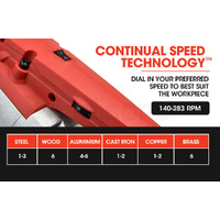 The clever 2-in-1 design includes a benchtop stand which enables you to perform the functions of a Metal Cut-off saw. Workpieces are easily secured in the quick-adjust vice clamp, and precise cuts including mitres can be made using the onboard scale. As an added benefit, unlike a traditional chop saw the Baumr-AG slices through metal with no sparks, and is cool to touch after the cut!