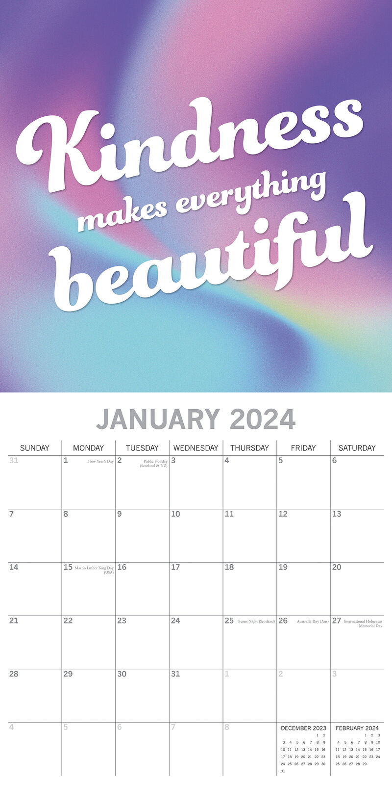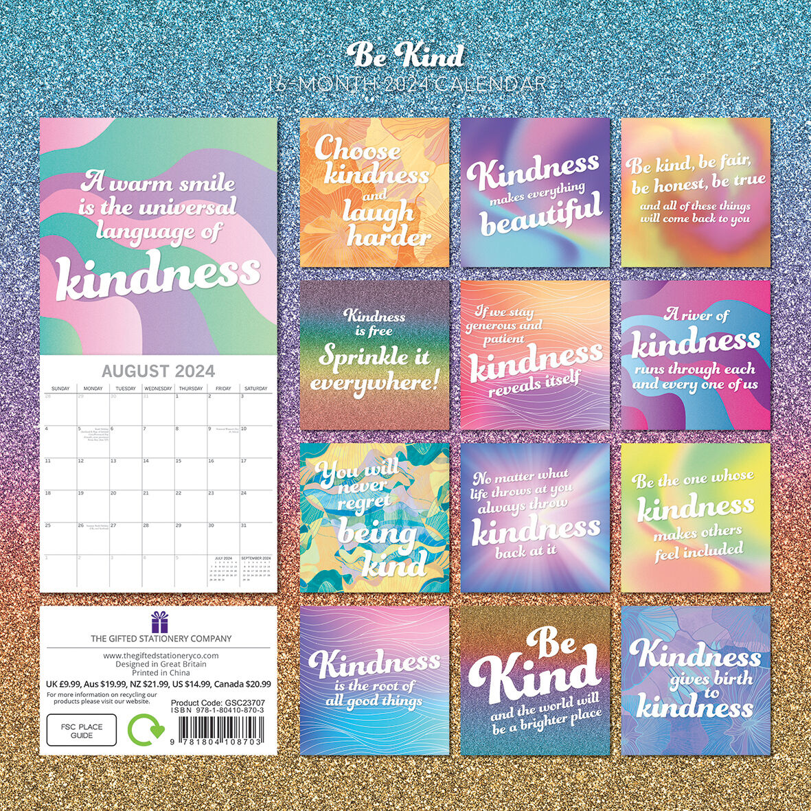 Be Kind - 2024 Square Wall Calendar 16 Months Lifestyle Planner New Year Gift