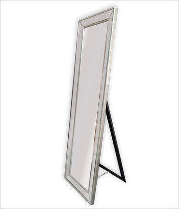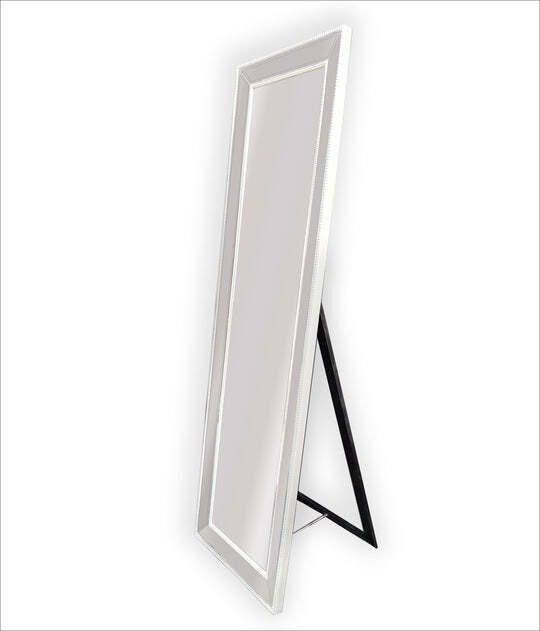 The Beaded Framed Mirror - Free Standing is a beautiful mirror that features a beaded frame.