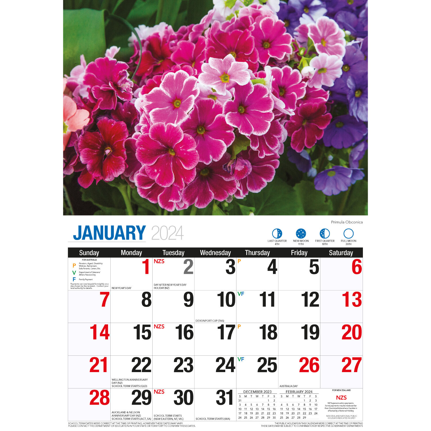 Beautiful Flowers - 2024 Rectangle Wall Calendar 16 Months Floral Art Home Decor