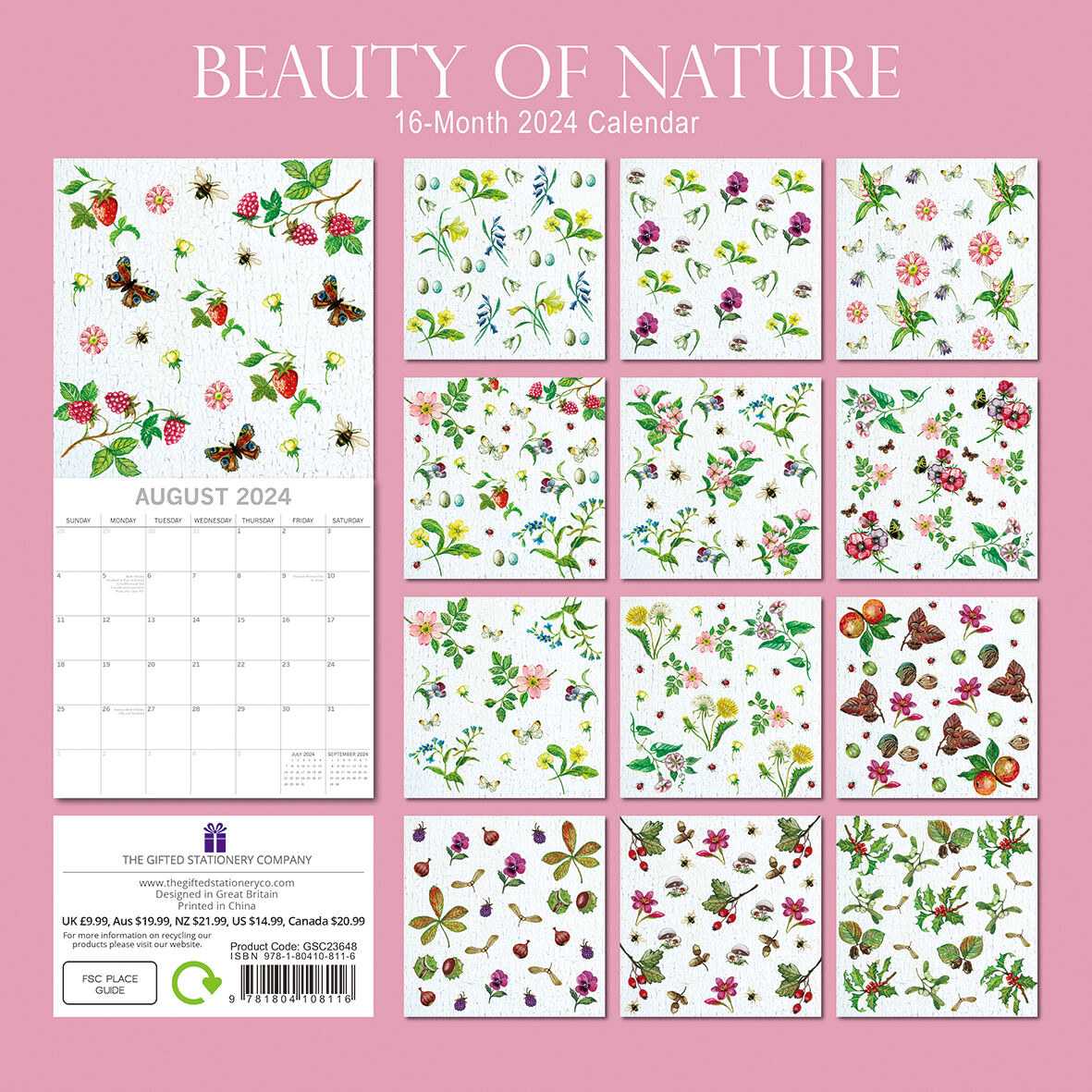 Beauty of Nature 2024 Square Wall Calendar 16 Month Floral Planner New Year Gift