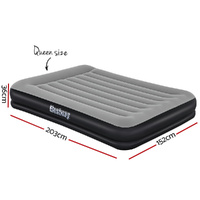 Featuring a comfortable flocked sleeping surface, the queen size air bed provides a smooth and comfy sleep each and every night. Designed with a sturdy I-beam construction, this quality air bed is suitable for both indoor and outdoor use. Inflates in just 300 seconds, You will have an instant bed ready to go whenever the situation calls for a spare mattress. Portable, easy to store and effortless to set up, this convenient air mattress provides the perfect balance of comfort, practicality and affordability.
