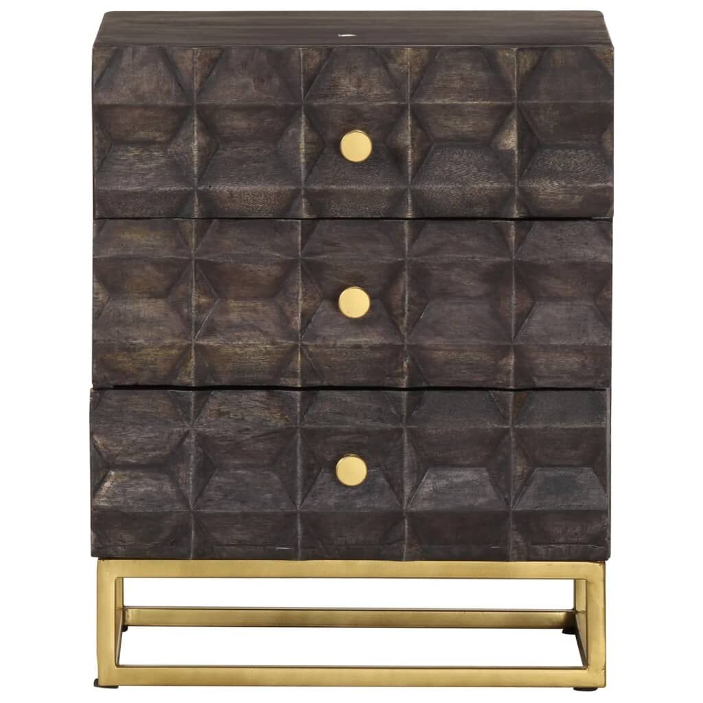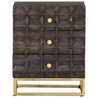 With block design, this wooden table cabinet adds an industrial style to your living room. The bedside cabinet is made of solid mango wood, a tropical hardwood with the strength to bear the weight. It also stands the wear and tear of time, making it stable and durable. This storage cabinet features three drawers, providing ample storage space for your books and personal belongings well organised. The sturdy tabletop is ideal for displaying decorative objects, photo frames, and other decorative items. Additionally, it is also easy to clean with a damp cloth. Important note: Colours and grains may vary from piece to piece, making each piece unique. The delivery is random, ensuring the exclusivity and individuality of your product.