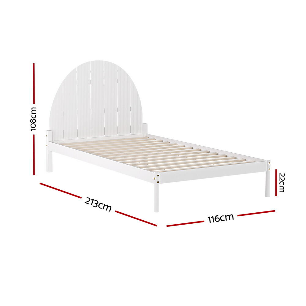 $101.51Introducing our elegant Artiss bed frame with a semicircular headboard, crafted from solid pinewood. Featuring reinforced wooden construction, sturdy slats, smooth edges, and non-toxic paint. Fits standard Australian mattress sizes, easy to maintain, and simple to assemble.