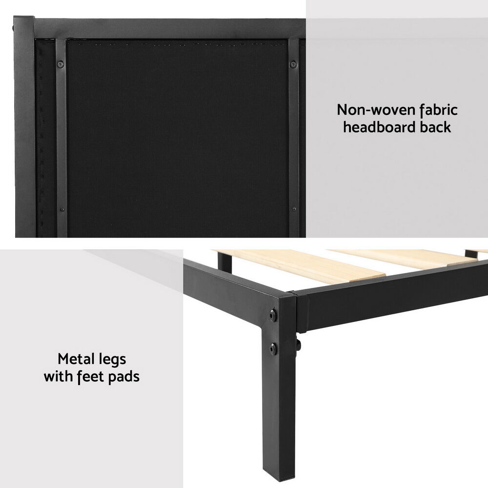 $101.51Looking for an affordable bed frame that doesn't compromise on quality or style? Look no further than the PADA Bed Frame from Artiss. This industrial-style bed frame features an enhanced powder-coated and rust-resistant steel frame with strongly reinforced plywood centre slats to keep your mattress securely in place and well-ventilated. The strong centre support beams give the bed a solid weight capacity of 300kg. Topped with a luxurious charcoal fabric upholstered headboard, this frame creates a clean, classic look that will transform your bedroom into a peaceful oasis of relaxation. It features ample space underneath to fit trundle drawers or other storage solutions, perfect for keeping your bedroom tidy. The simple, industrial-style design ensures that it will complement any bedding or decor you choose to pair it with. Practical, functional and stylish, the PADA Bed Frame from Artiss is an easy purchase.