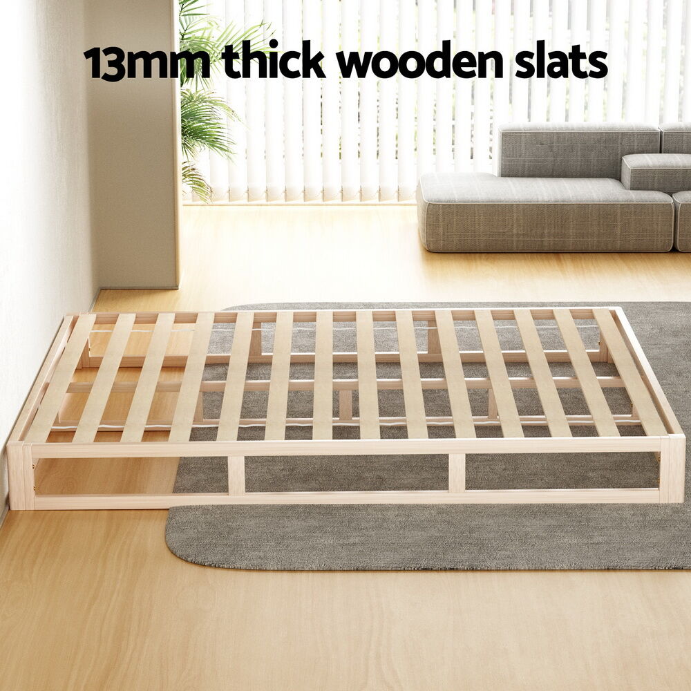 $156.97For a minimalist, budget-friendly sleep solution, the Kalam Bed Frame from Artiss is an excellent choice. Crafted from solid pinewood, this bed frame boasts a sturdy and stable foundation that has been reinforced for additional support. The sturdy wooden slats provide ample support and ventilation for your mattress, ensuring a comfortable and restful sleep every night. Not only is the Kalam Bed Frame functional, but it also features a sleek and stylish design that will elevate the look of any bedroom. The smooth and safe edges add a touch of elegance, while the high-quality metal fixings ensure durability and longevity. With under-bed storage, you can keep your bedroom clutter-free and organised. Assembly is a breeze, and maintenance and cleaning are easy, making this bed frame a practical and convenient choice. The Kalam Bed Frame fits standard Australian mattress sizes, making it a versatile addition to any home.