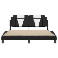Get a better restful night's sleep from this bed frame with LED lights! It makes a welcoming addition to any bedroom. Durable faux leather: Premium faux leather is a highly durable material. It is resistant to stain, making it easy to clean with a damp cloth. The smooth surface also gives a luxurious look and the beauty of real leather.Plywood slats: The plywood slats provide good weight distribution, ensuring that the mattress stays in place with every twist and turn of your body during sleep.Excellent support: The bed header provides you with excellent back support while you're sitting up in bed to read or watch TV.Colourful LED strip: Bring playfulness into darkness with colourful LED lights! The hook and loop fasteners on the back of the headboard cushion can be used to secure the LED lights.Waved side design: The waved look of the bed frame is stylish and sophisticated, adding a modern and elegant touch to your decor, making it the focal point of your bedroom. Good to know:A mattress is not included with this bed. We do offer a various selection of mattresses. You can check our shop for a matching mattress.The product has a USB connector that requires a certified 5V USB power source (not included).