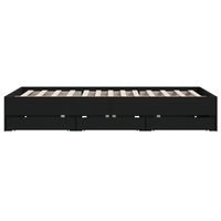 Add a modern touch to your bedroom with this bed frame with drawers! It makes a practical and decorative addition to your living space. Durable material: The bed frame is made of engineered wood. The engineered wood is of exceptional quality with a smooth surface and also features strength, stability, and resistance to moisture.Sturdy slats: The plywood slats provide good weight distribution, ensuring that the mattress stays in place with every twist and turn of your body during sleep.Storage function: The included bed drawers provide ample storage space for storing your essentials, keeping your room clean and tidy. Good to know:A mattress is not included with this bed. We do offer a various selection of mattresses. You can check our shop for a matching mattress.