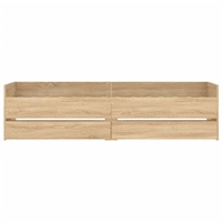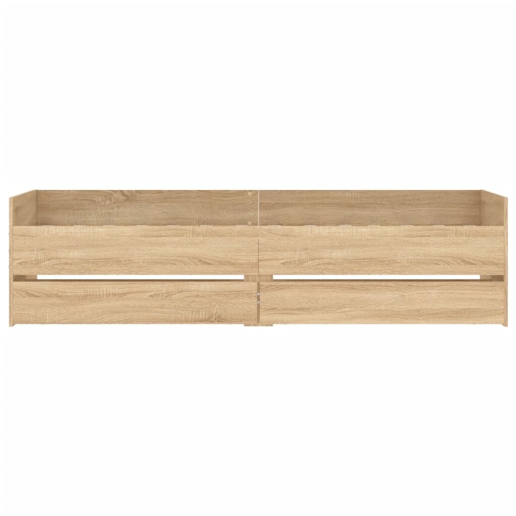 Add a modern touch to your bedroom with this bed frame with drawers! It makes a practical and decorative addition to your living space. Durable material: The bed frame is made of engineered wood. The engineered wood is of exceptional quality with a smooth surface and also features strength, stability, and resistance to moisture.Sturdy slats: The plywood slats provide good weight distribution, ensuring the mattress stays in place with every twist and turn of your body during sleep.Storage function: The included bed drawers provide ample storage space for storing your essentials, keeping your room clean and tidy. Good to know:A mattress is not included with this bed. We do offer a various selection of mattresses. You can check our shop for a matching mattress.