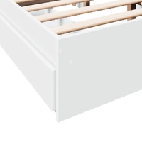 Add a modern touch to your bedroom with this bed frame with drawers! It makes a practical and decorative addition to your living space. Durable material: The bed frame is made of engineered wood. The engineered wood is of exceptional quality with a smooth surface and also features strength, stability, and resistance to moisture.Sturdy slats: The plywood slats provide good weight distribution, ensuring the mattress stays in place with every twist and turn of your body during sleep.Storage function: The included bed drawers provide ample storage space for storing your essentials, keeping your room clean and tidy. Good to know:A mattress is not included with this bed. We do offer a various selection of mattresses. You can check our shop for a matching mattress.
