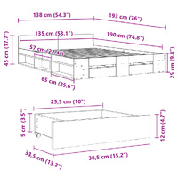 Add a modern touch to your bedroom with this bed frame with drawers! It makes a practical and decorative addition to your living space. Durable material: The bed frame is made of engineered wood. The engineered wood is of exceptional quality with a smooth surface and also features strength, stability, and resistance to moisture.Sturdy slats: The plywood slats provide good weight distribution, ensuring the mattress stays in place with every twist and turn of your body during sleep.Storage function: The included bed drawers and side compartments provide ample storage space for storing your essentials, keeping your room clean and tidy. Good to know:A mattress is not included with this bed. We do offer a various selection of mattresses. You can check our shop for a matching mattress.