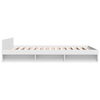 Add a modern touch to your bedroom with this bed frame with drawers! It makes a practical and decorative addition to your living space. Durable material: The bed frame is made of engineered wood. The engineered wood is of exceptional quality with a smooth surface and also features strength, stability, and resistance to moisture.Sturdy slats: The plywood slats provide good weight distribution, ensuring the mattress stays in place with every twist and turn of your body during sleep.Storage function: The included bed drawers and side compartments provide ample storage space for storing your essentials, keeping your room clean and tidy. Good to know:A mattress is not included with this bed. We do offer a various selection of mattresses. You can check our shop for a matching mattress.