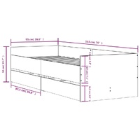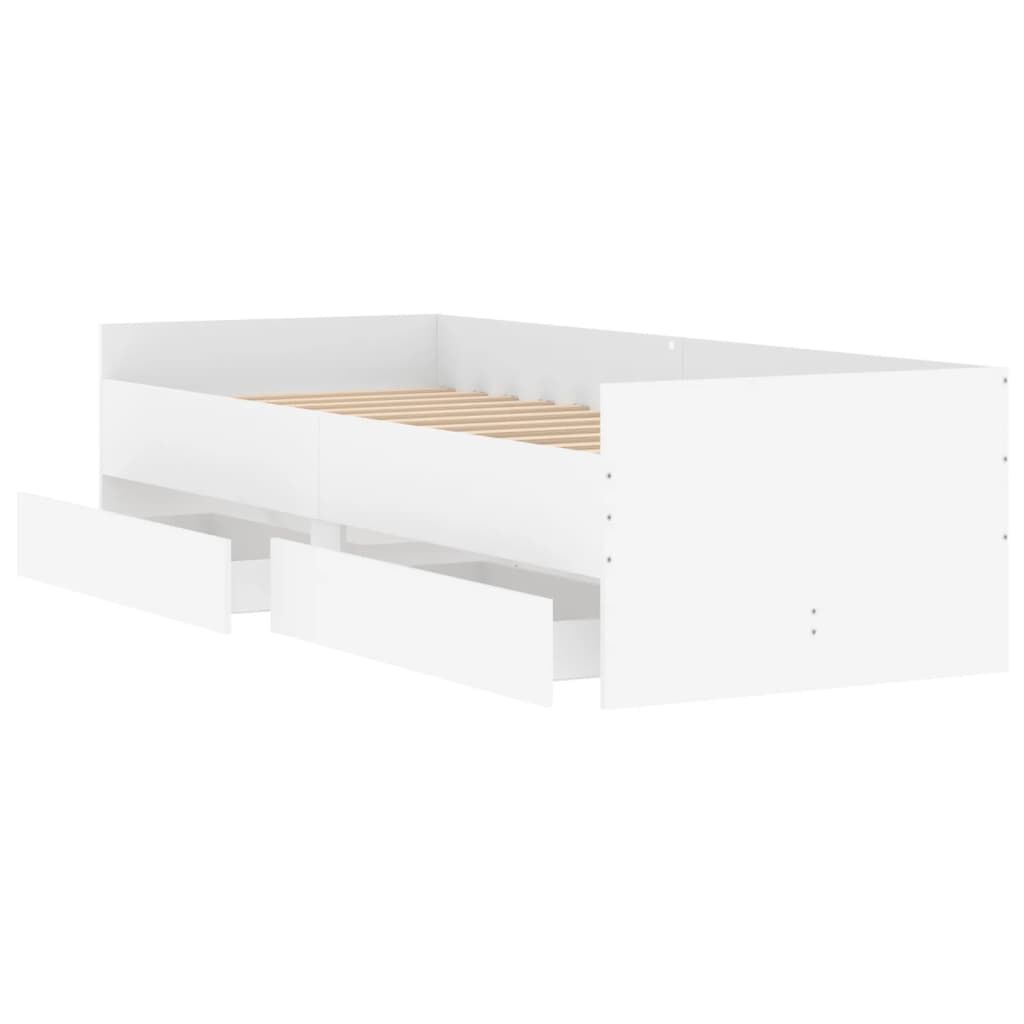 Add a modern touch to your bedroom with this bed frame with drawers! It makes a practical and decorative addition to your living space. Durable material: The bed frame is made of engineered wood. The engineered wood is of exceptional quality with a smooth surface and also features strength, stability, and resistance to moisture.Sturdy slats: The plywood slats provide good weight distribution, ensuring the mattress stays in place with every twist and turn of your body during sleep.Storage function: The included bed drawers provide ample storage space for storing your essentials, keeping your room clean and tidy. Good to know:A mattress is not included with this bed. We do offer a various selection of mattresses. You can check our shop for a matching mattress.