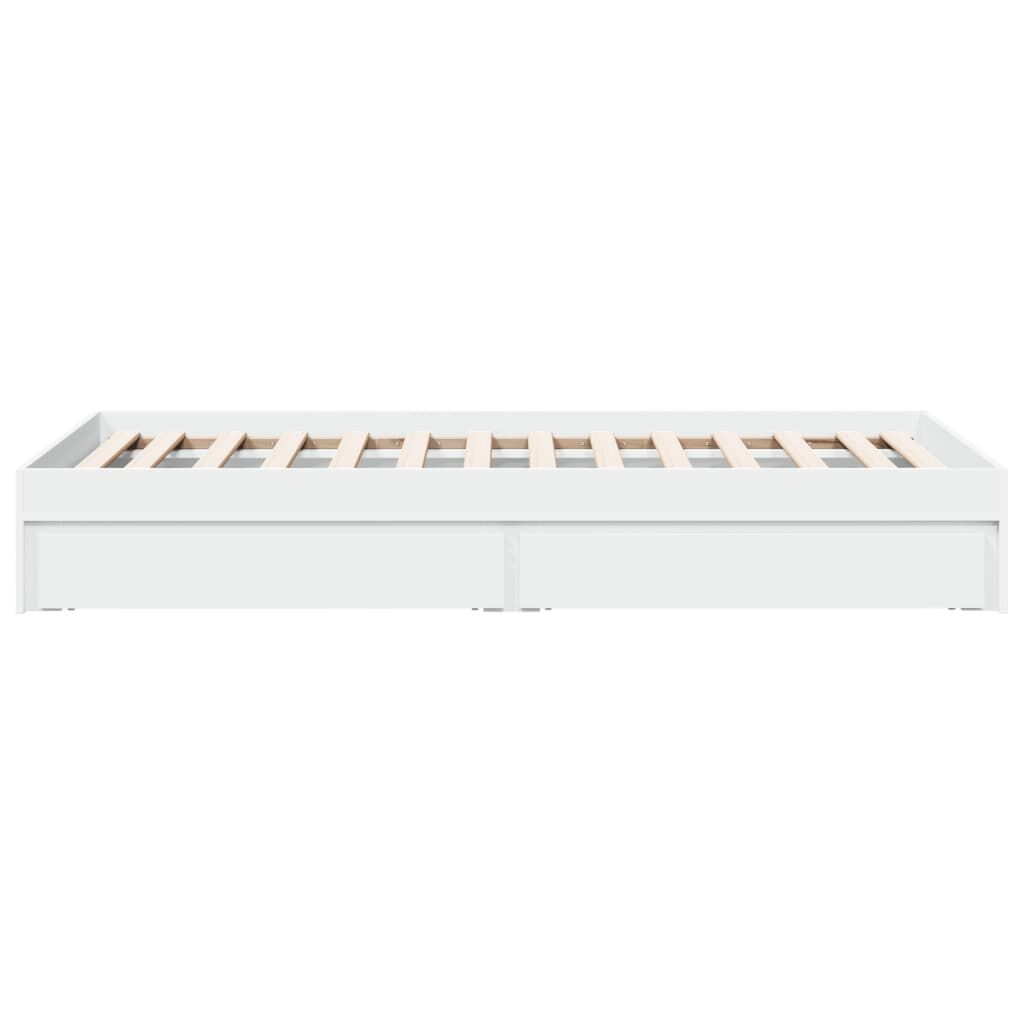Add a modern touch to your bedroom with this bed frame with drawers! It makes a practical and decorative addition to your living space. Durable material: The bed frame is made of engineered wood. The engineered wood is of exceptional quality with a smooth surface and also features strength, stability, and resistance to moisture.Sturdy slats: The plywood slats provide good weight distribution, ensuring the mattress stays in place with every twist and turn of your body during sleep.Storage function: The included bed drawers provide ample storage space for storing your essentials, keeping your room clean and tidy. Good to know:A mattress is not included with this bed. We do offer a various selection of mattresses. You can check our shop for a matching mattress.
