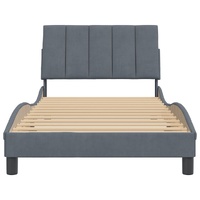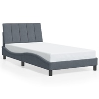 $241.53Get a better restful night's sleep from this bed frame with headboard! It makes a welcoming addition to any bedroom. Soft velvet: Velvet is a soft and comfortable fabric that feels nice against the skin.Plywood slats: The plywood slats provide good weight distribution, ensuring that the mattress stays in place with every twist and turn of your body during sleep.Excellent support: The headboard pillow is stuffed with foam for ultra-soft and optimal comfort, providing you with excellent back support while you're sitting up in bed to read or watch TV.Convenient design: The cushion headboard has a zipper for easy installation, and the hook-and-loop fasteners on the back can be used to secure the LED lights.Waved side design: The waved look of the bed frame is stylish and sophisticated, adding a modern and elegant touch to your decor, making it the focal point of your bedroom. Good to know:A mattress is not included with this bed. We do offer a various selection of mattresses. You can check our shop for a matching mattress.