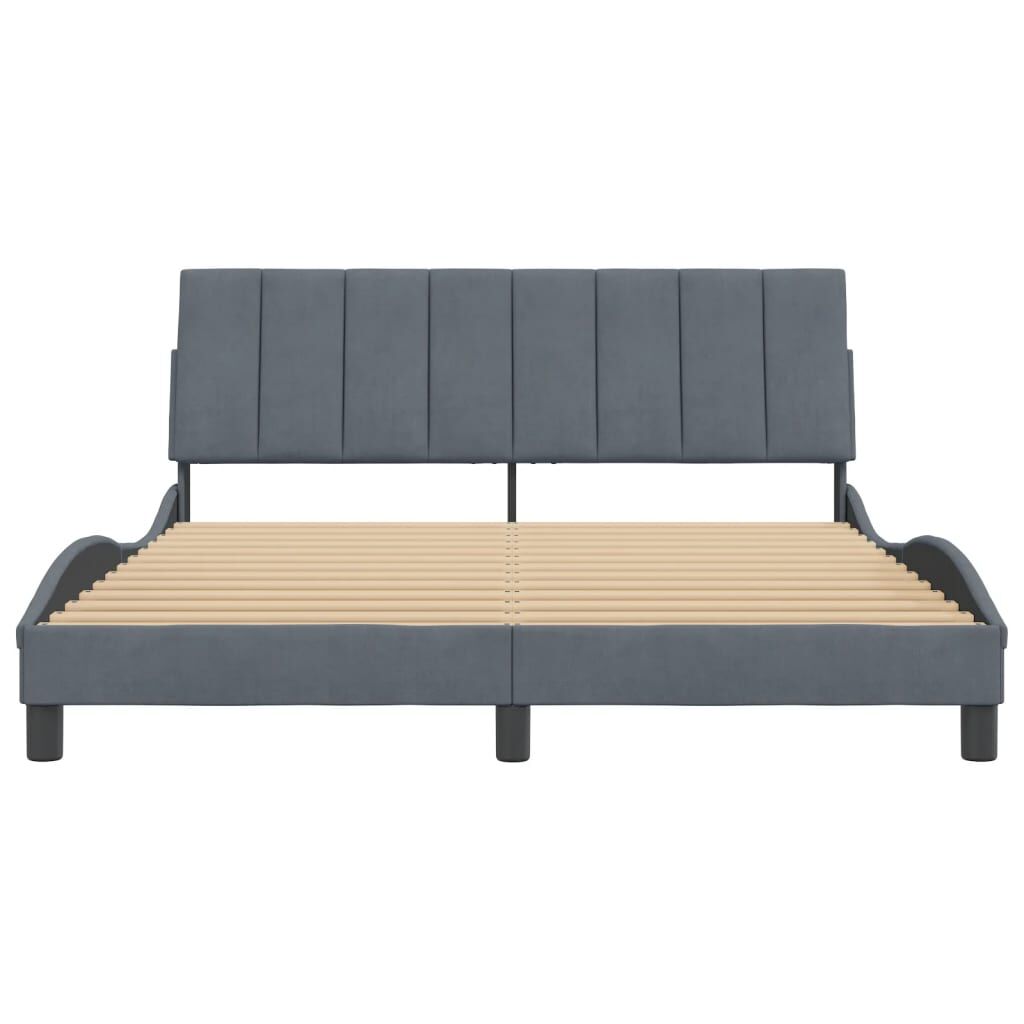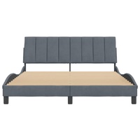 Get a better restful night's sleep from this bed frame with headboard! It makes a welcoming addition to any bedroom. Soft velvet: Velvet is a soft and comfortable fabric that feels nice against the skin.Plywood slats: The plywood slats provide good weight distribution, ensuring that the mattress stays in place with every twist and turn of your body during sleep.Excellent support: The headboard pillow is stuffed with foam for ultra-soft and optimal comfort, providing you with excellent back support while you're sitting up in bed to read or watch TV.Convenient design: The cushion headboard has a zipper for easy installation, and the hook-and-loop fasteners on the back can be used to secure the LED lights.Waved side design: The waved look of the bed frame is stylish and sophisticated, adding a modern and elegant touch to your decor, making it the focal point of your bedroom. Good to know:A mattress is not included with this bed. We do offer a various selection of mattresses. You can check our shop for a matching mattress.