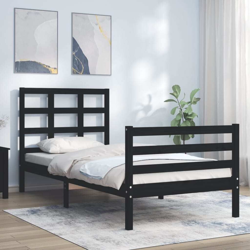 NOW $182.35Enjoy a good night's sleep in this wooden bed frame! It makes a practical and decorative addition to your interior. Durable material: Solid pine wood is a beautiful natural material. Pine wood has a straight grain, and the knots give the material its signature, rustic look. Made of solid pinewood, this bed is sturdy and durable.Plywood slats: The plywood slats provide good weight distribution, ensuring your mattress with much-needed support and breathability.Functional headboard and footboard: The headboard and footboard of the wooden bed can keep your mattress in place. Also, the headboard provides you with excellent back support when you sit up in bed to read or watch TV. Good to know:A mattress is not included with this bed. We do offer a various selection of mattresses. You can check our shop for a matching mattress.