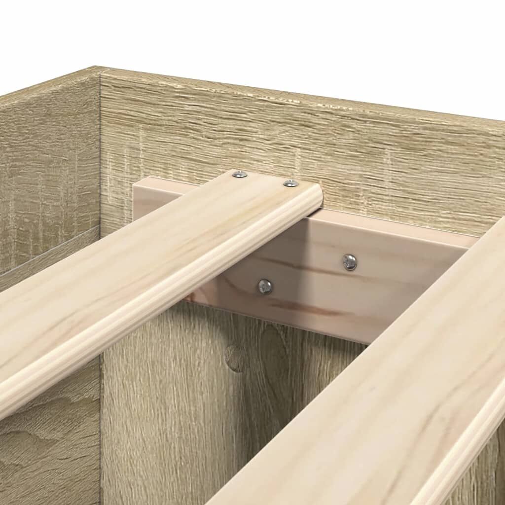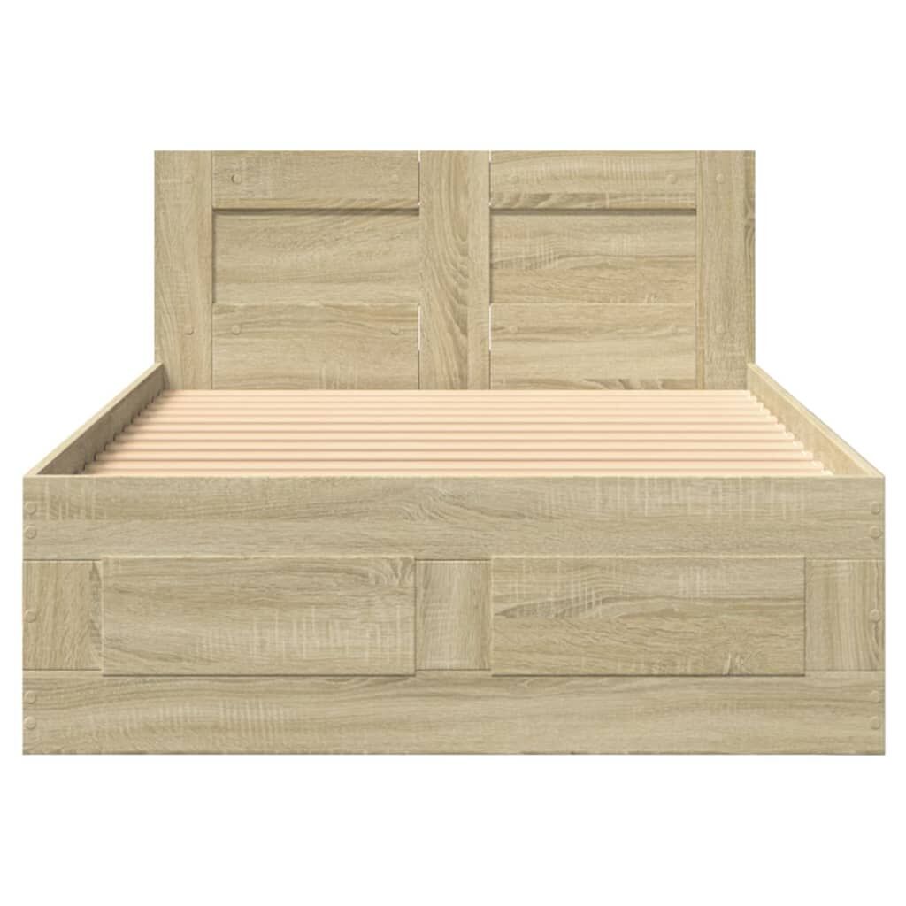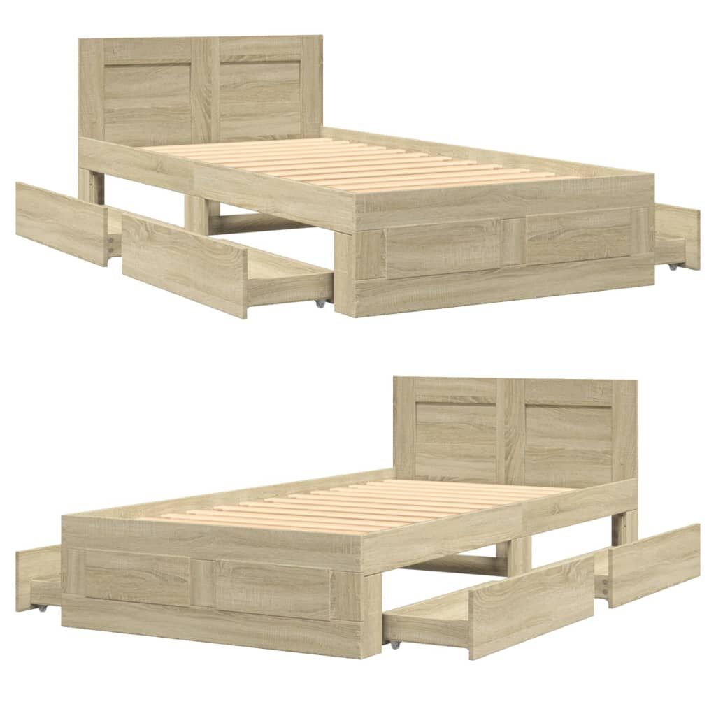 Get a better restful night's sleep from this bed frame! It makes a welcoming addition to any bedroom. Durable material: The bed frame is made of engineered wood. The engineered wood is of exceptional quality with a smooth surface and also features strength, stability, and resistance to moisture.Slatted base for optimal support: The bed frame is equipped with a slatted base for support and breathability for your mattress.Storage function: This bed frame offers drawers for keeping your magazines, books, toys and other small items well-organised.Excellent support: The headboard of the bed base provides you with excellent back support when you sit up in bed to read or watch TV. Good to know:A mattress is not included with this bed. We do offer a various selection of mattresses. You can check our shop for a matching mattress.