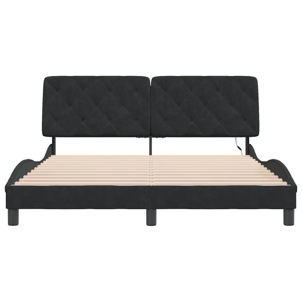 Bed Frame with LED without Mattress Black 152x203 cm Queen Velvet