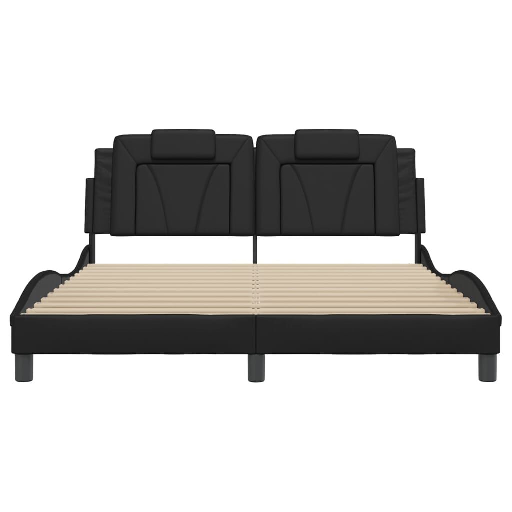 Get a better restful night's sleep from this bed frame with LED lights! It makes a welcoming addition to any bedroom. Durable faux leather: Premium faux leather is a highly durable material. It is resistant to stain, making it easy to clean with a damp cloth. The smooth surface also gives a luxurious look and the beauty of real leather.Plywood slats: The plywood slats provide good weight distribution, ensuring that the mattress stays in place with every twist and turn of your body during sleep.Excellent support: The headboard pillow is stuffed with foam for ultra-soft and optimal comfort, providing you with excellent back support while you're sitting up in bed to read or watch TV.Colourful LED strip: Bring playfulness into darkness with colourful LED lights! The hook and loop fasteners on the back of the headboard cushion can be used to secure the LED lights.Waved side design: The waved look of the bed frame is stylish and sophisticated, adding a modern and elegant touch to your decor, making it the focal point of your bedroom. Good to know:A mattress is not included with this bed. We do offer a various selection of mattresses. You can check our shop for a matching mattress.The product has a USB connector that requires a certified 5V USB power source (not included).
