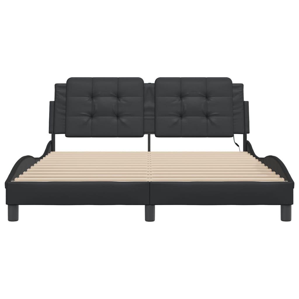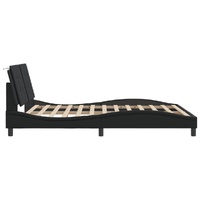 Get a better restful night's sleep from this bed frame with LED lights! It makes a welcoming addition to any bedroom. Durable faux leather: Premium faux leather is a highly durable material. It is resistant to stain, making it easy to clean with a damp cloth. The smooth surface also gives a luxurious look and the beauty of real leather.Plywood slats: The plywood slats provide good weight distribution, ensuring that the mattress stays in place with every twist and turn of your body during sleep.Excellent support: The headboard pillow is stuffed with foam for ultra-soft and optimal comfort, providing you with excellent back support while you're sitting up in bed to read or watch TV.Colourful LED strip: Bring playfulness into darkness with colourful LED lights! The hook and loop fasteners on the back of the headboard cushion can be used to secure the LED lights.Waved side design: The waved look of the bed frame is stylish and sophisticated, adding a modern and elegant touch to your decor, making it the focal point of your bedroom. Good to know:A mattress is not included with this bed. We do offer a various selection of mattresses. You can check our shop for a matching mattress.The product has a USB connector that requires a certified 5V USB power source (not included).