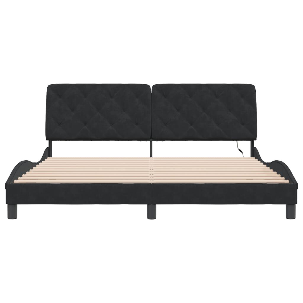 Get a better restful night's sleep from this bed frame with LED lights! It makes a welcoming addition to any bedroom. Soft velvet: Velvet is a soft and comfortable fabric that feels nice against the skin. Plywood slats: The plywood slats provide good weight distribution, ensuring that the mattress stays in place with every twist and turn of your body during sleep. Excellent support: The headboard pillow is stuffed with foam for ultra-soft and optimal comfort, providing you with excellent back support while you're sitting up in bed to read or watch TV. Colourful LED strip: Bring playfulness into darkness with colourful LED lights! The hook and loop fasteners on the back of the headboard cushion can be used to secure the LED lights. Waved side design: The waved look of the bed frame is stylish and sophisticated, adding a modern and elegant touch to your decor, making it the focal point of your bedroom. Good to know:A mattress is not included with this bed. We do offer a various selection of mattresses. You can check our shop for a matching mattress.The product has a USB connector that requires a certified 5V USB power source (not included).