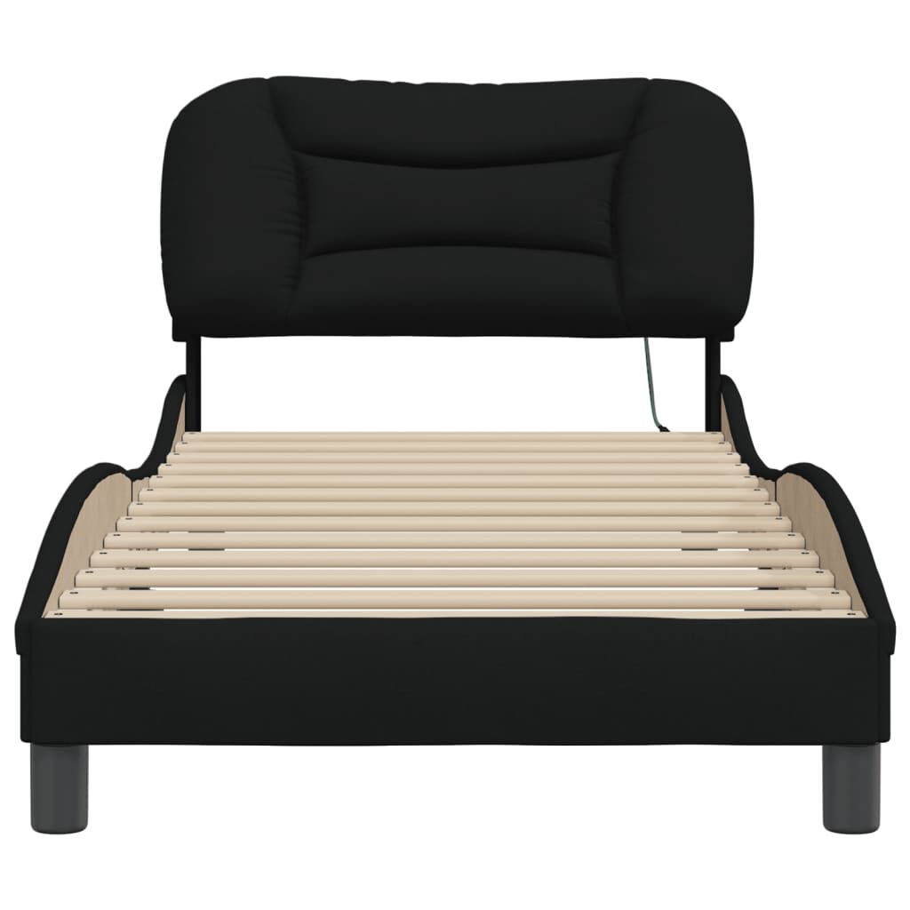 Get a better restful night's sleep from this bed frame with LED lights! It makes a welcoming addition to any bedroom. Durable fabric: The fabric features a simple and clean look, and is breathable and durable.Plywood slats: The plywood slats provide good weight distribution, ensuring that the mattress stays in place with every twist and turn of your body during sleep.Excellent support: The bed header provides you with excellent back support while you're sitting up in bed to read or watch TV.Colourful LED strip: Bring playfulness into darkness with colourful LED lights! The hook and loop fasteners on the back of the headboard cushion can be used to secure the LED lights.Waved side design: The waved look of the bed frame is stylish and sophisticated, adding a modern and elegant touch to your decor, making it the focal point of your bedroom. Good to know:A mattress is not included with this bed. We do offer a various selection of mattresses. You can check our shop for a matching mattress.The product has a USB connector that requires a certified 5V USB power source (not included).