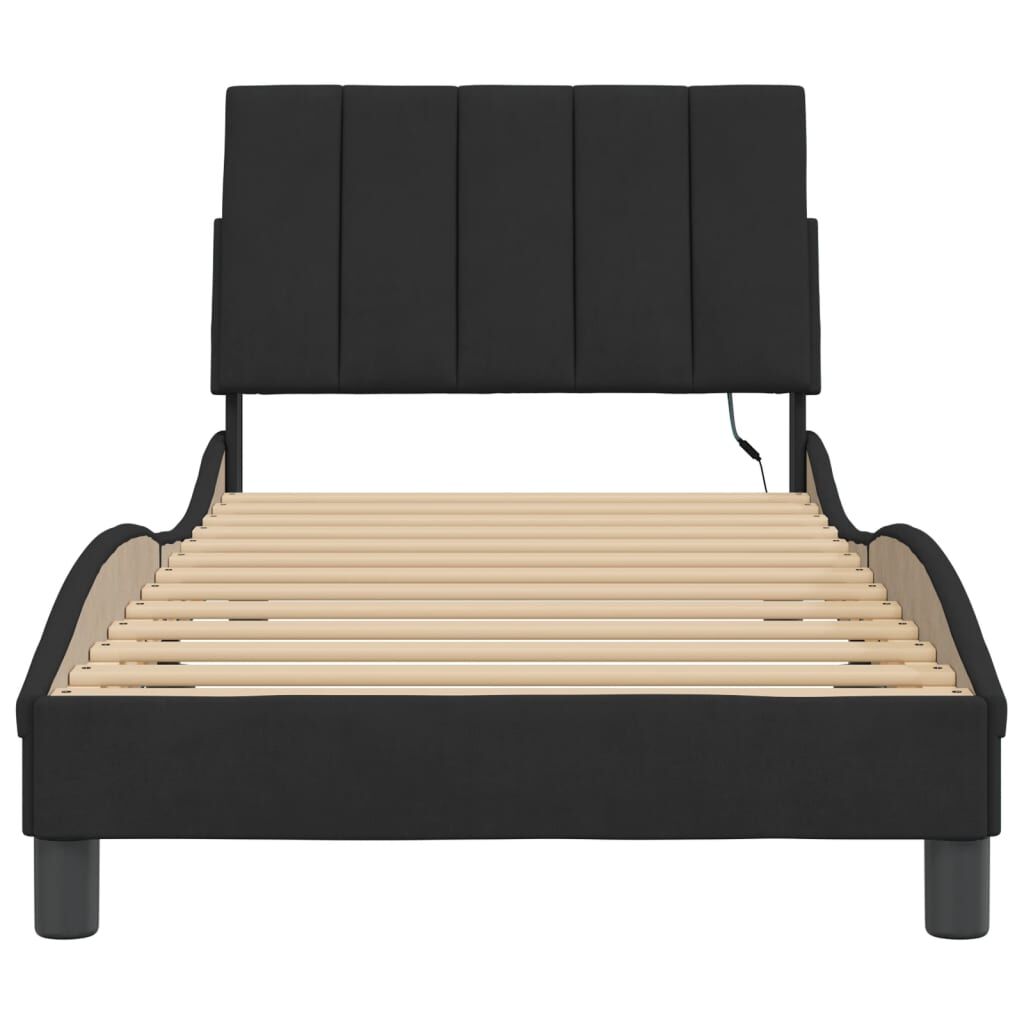 Get a better restful night's sleep from this bed frame with LED lights! It makes a welcoming addition to any bedroom. Soft velvet: Velvet is a soft and comfortable fabric that feels nice against the skin.Plywood slats: The plywood slats provide good weight distribution, ensuring that the mattress stays in place with every twist and turn of your body during sleep.Excellent support: The headboard pillow is stuffed with foam for ultra-soft and optimal comfort, providing you with excellent back support while you're sitting up in bed to read or watch TV.Colourful LED strip: Bring playfulness into darkness with colourful LED lights! The hook and loop fasteners on the back of the headboard cushion can be used to secure the LED lights.Waved side design: The waved look of the bed frame is stylish and sophisticated, adding a modern and elegant touch to your decor, making it the focal point of your bedroom. Good to know:A mattress is not included with this bed. We do offer a various selection of mattresses. You can check our shop for a matching mattress.The product has a USB connector that requires a certified 5V USB power source (not included).