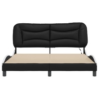 Get a better restful night's sleep from this bed frame with LED lights! It makes a welcoming addition to any bedroom. Durable faux leather: Premium faux leather is a highly durable material. It is resistant to stain, making it easy to clean with a damp cloth. The smooth surface also gives a luxurious look and the beauty of real leather.Plywood slats: The plywood slats provide good weight distribution, ensuring that the mattress stays in place with every twist and turn of your body during sleep. Excellent support: The headboard pillow is stuffed with PP fibre for ultra-soft and optimal comfort, providing you with excellent back support while you're sitting up in bed to read or watch TV. Colourful LED strip: Bring playfulness into darkness with colourful LED lights! The hook and loop fasteners on the back of the headboard cushion can be used to secure the LED lights. Waved side design: The waved look of the bed frame is stylish and sophisticated, adding a modern and elegant touch to your decor, making it the focal point of your bedroom. Good to know:A mattress is not included with this bed. We do offer a various selection of mattresses. You can check our shop for a matching mattress.The product has a USB connector that requires a certified 5V USB power source (not included).