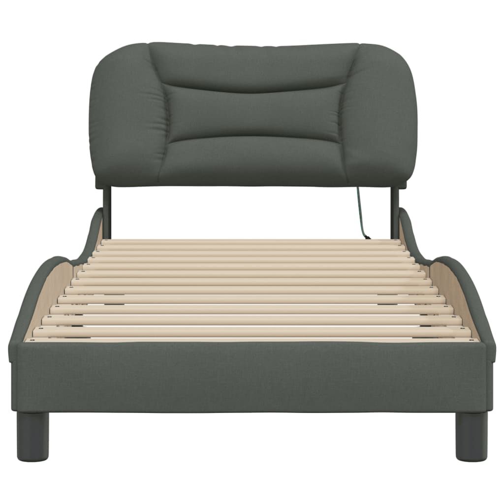 Get a better restful night's sleep from this bed frame with LED lights! It makes a welcoming addition to any bedroom. Durable fabric: The fabric features a simple and clean look, and is breathable and durable.Plywood slats: The plywood slats provide good weight distribution, ensuring that the mattress stays in place with every twist and turn of your body during sleep.Excellent support: The bed header provides you with excellent back support while you're sitting up in bed to read or watch TV.Colourful LED strip: Bring playfulness into darkness with colourful LED lights! The hook and loop fasteners on the back of the headboard cushion can be used to secure the LED lights.Waved side design: The waved look of the bed frame is stylish and sophisticated, adding a modern and elegant touch to your decor, making it the focal point of your bedroom. Good to know:A mattress is not included with this bed. We do offer a various selection of mattresses. You can check our shop for a matching mattress.The product has a USB connector that requires a certified 5V USB power source (not included).
