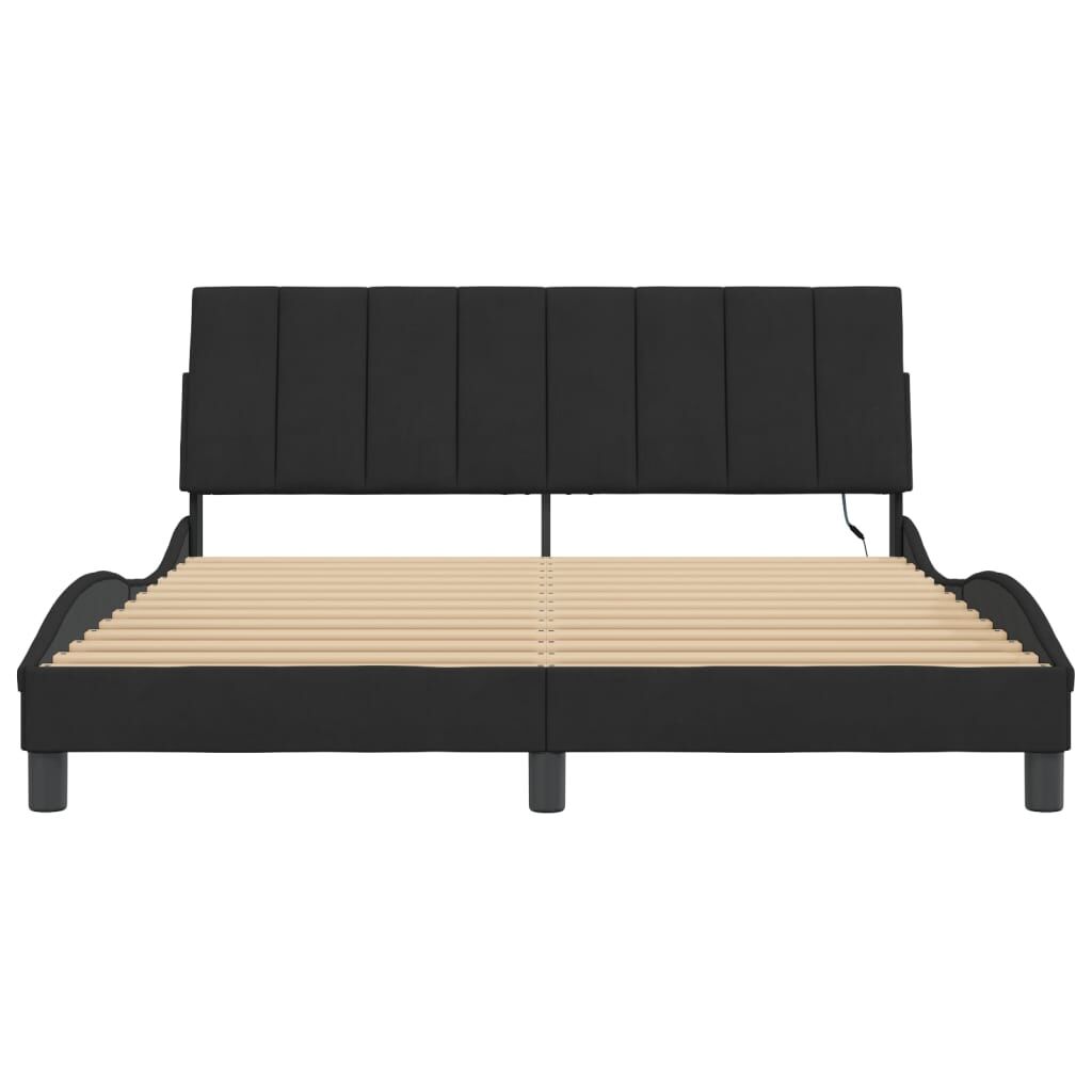 Get a better restful night's sleep from this bed frame with LED lights! It makes a welcoming addition to any bedroom. Soft velvet: Velvet is a soft and comfortable fabric that feels nice against the skin. Plywood slats: The plywood slats provide good weight distribution, ensuring that the mattress stays in place with every twist and turn of your body during sleep. Excellent support: The headboard pillow is stuffed with foam for ultra-soft and optimal comfort, providing you with excellent back support while you're sitting up in bed to read or watch TV. Colourful LED strip: Bring playfulness into darkness with colourful LED lights! The hook and loop fasteners on the back of the headboard cushion can be used to secure the LED lights. Waved side design: The waved look of the bed frame is stylish and sophisticated, adding a modern and elegant touch to your decor, making it the focal point of your bedroom. Good to know:A mattress is not included with this bed. We do offer a various selection of mattresses. You can check our shop for a matching mattress.The product has a USB connector that requires a certified 5V USB power source (not included).