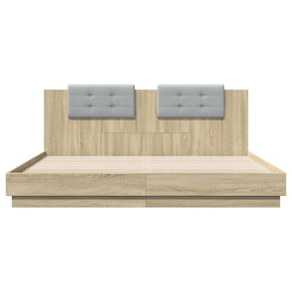 Get a better restful night's sleep from this bed frame with headboard and LED lights! It makes a welcoming addition to any bedroom. Durable material: The engineered wood is of exceptional quality with smooth surface and also features strength, stability and resistance to moisture.RGB LED lights: The bed frame is equipped with vibrant RGB LED lights. With various customisable menus, you can effortlessly change the colour of the lights and even set them to adjust automatically. These LED lights not only enhance the contemporary look of the bed base but also add to its trendy appeal.Excellent support: The bed headboard provides you with excellent back support while you're sitting up in bed to read or watch TV.Sturdy slats: The plywood slats provide good weight distribution, ensuring that the mattress stays in place with every twist and turn of your body during sleep. Good to know:A mattress is not included with this bed. We do offer a various selection of mattresses. You can check our shop for a matching mattress.The product has a USB connector that requires a certified 5V USB power source (not included).