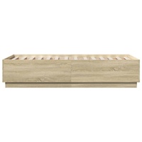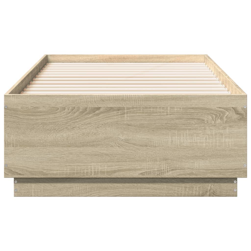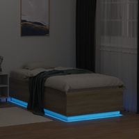 Get a better restful night's sleep from this bed frame with LED lights! It makes a welcoming addition to any bedroom. Durable material: The engineered wood is of exceptional quality with smooth surface and also features strength, stability and resistance to moisture.RGB LED lights: The bed frame is equipped with vibrant RGB LED lights. With various customisable menus, you can effortlessly change the colour of the lights and even set them to adjust automatically. These LED lights not only enhance the contemporary look of the bed base but also add to its trendy appeal.Sturdy slats: The plywood slats provide good weight distribution, ensuring that the mattress stays in place with every twist and turn of your body during sleep. Good to know:A mattress is not included with this bed. We do offer a various selection of mattresses. You can check our shop for a matching mattress.The product has a USB connector that requires a certified 5V USB power source (not included).