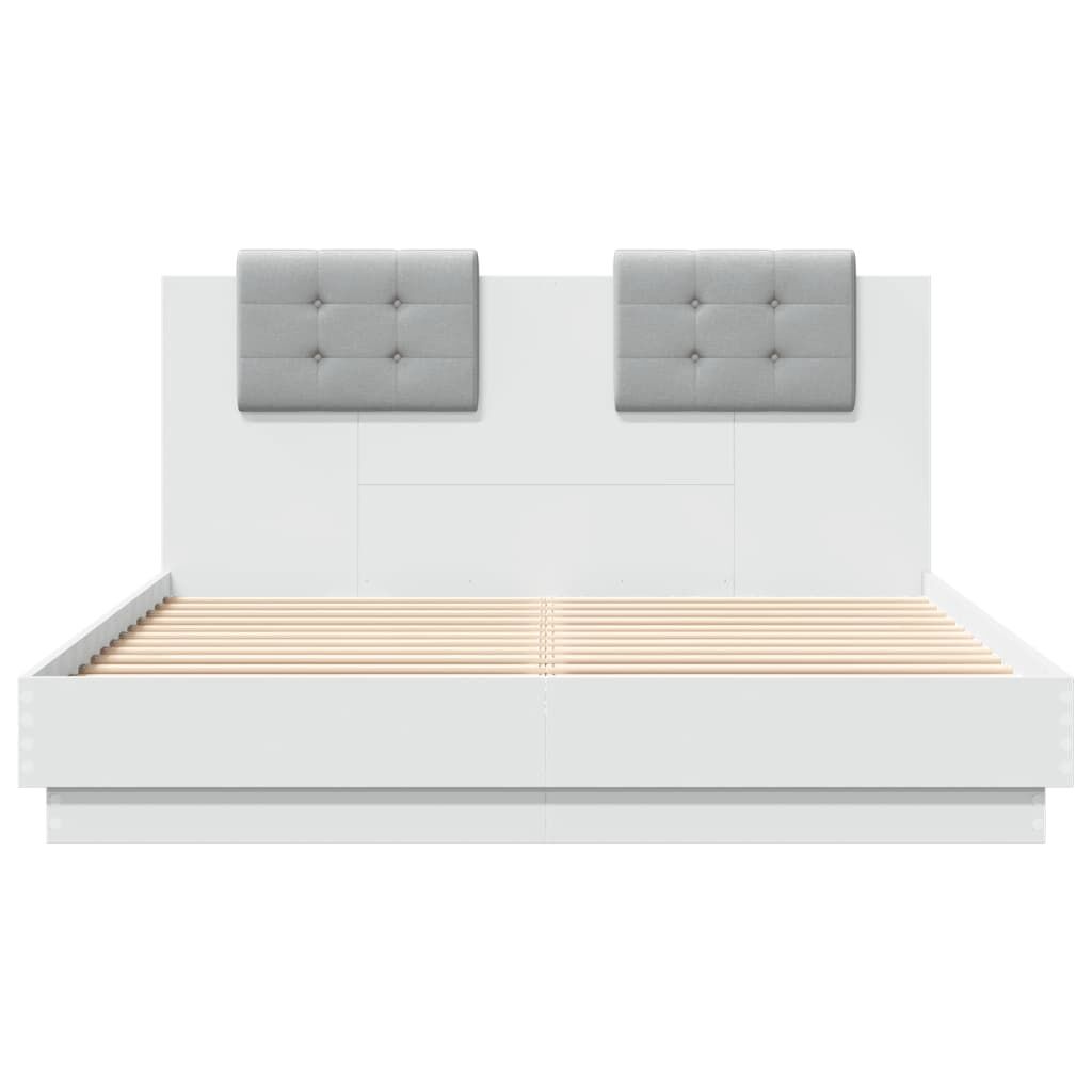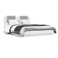 Get a better restful night's sleep from this bed frame with headboard and LED lights! It makes a welcoming addition to any bedroom. Durable material: The engineered wood is of exceptional quality with smooth surface and also features strength, stability and resistance to moisture.RGB LED lights: The bed frame is equipped with vibrant RGB LED lights. With various customisable menus, you can effortlessly change the colour of the lights and even set them to adjust automatically. These LED lights not only enhance the contemporary look of the bed base but also add to its trendy appeal.Excellent support: The bed headboard provides you with excellent back support while you're sitting up in bed to read or watch TV.Sturdy slats: The plywood slats provide good weight distribution, ensuring that the mattress stays in place with every twist and turn of your body during sleep. Good to know:A mattress is not included with this bed. We do offer a various selection of mattresses. You can check our shop for a matching mattress.The product has a USB connector that requires a certified 5V USB power source (not included).