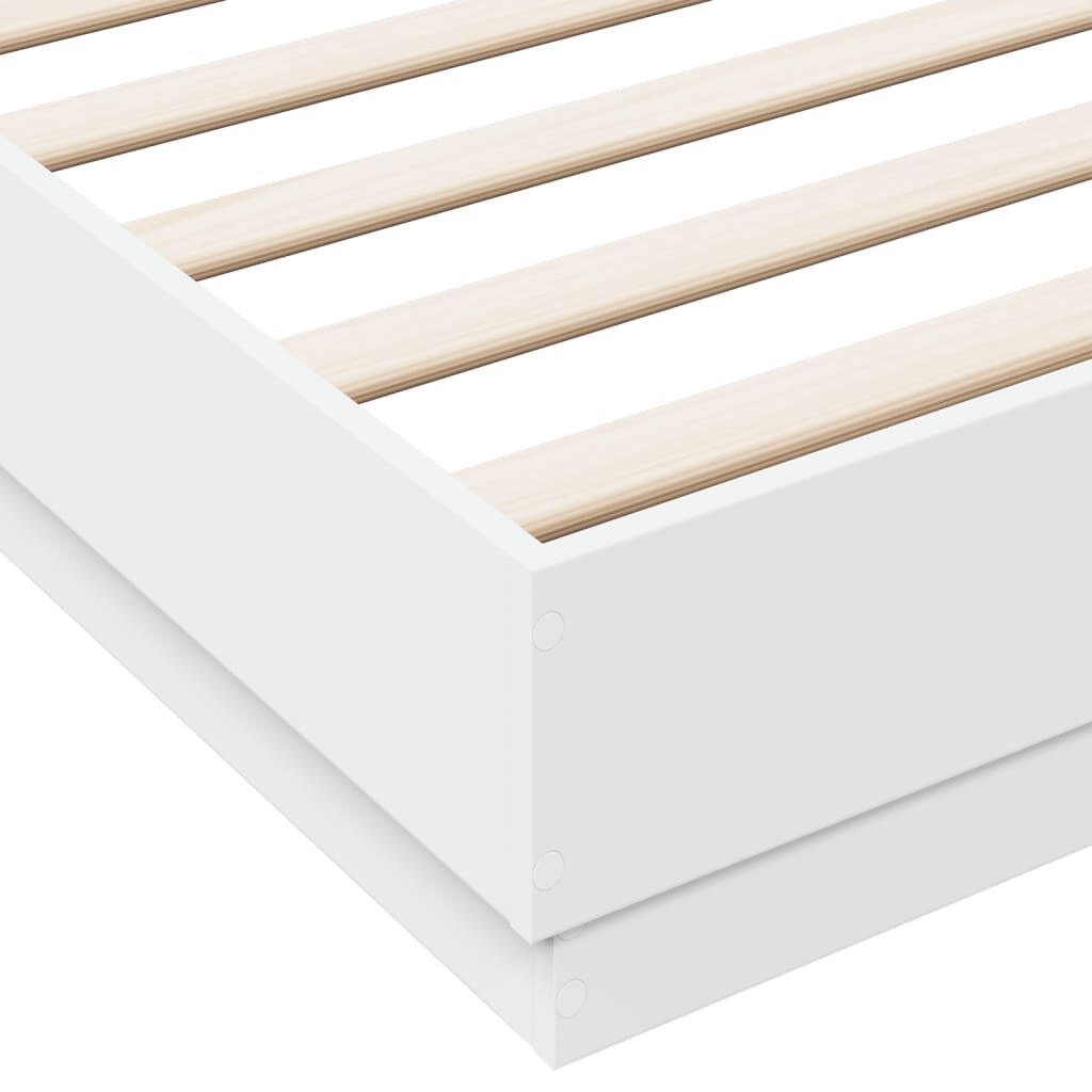 Get a better restful night's sleep from this bed frame with LED lights! It makes a welcoming addition to any bedroom. Durable material: The engineered wood is of exceptional quality with smooth surface and also features strength, stability and resistance to moisture.RGB LED lights: The bed frame is equipped with vibrant RGB LED lights. With various customisable menus, you can effortlessly change the colour of the lights and even set them to adjust automatically. These LED lights not only enhance the contemporary look of the bed base but also add to its trendy appeal.Sturdy slats: The plywood slats provide good weight distribution, ensuring that the mattress stays in place with every twist and turn of your body during sleep. Good to know:A mattress is not included with this bed. We do offer a various selection of mattresses. You can check our shop for a matching mattress.The product has a USB connector that requires a certified 5V USB power source (not included).