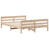 Enjoy a good night’s sleep in this wooden bed frame! It makes a practical and decorative addition to your interior. Solid pine wood: Solid pine wood is a beautiful natural material. Pine wood has a straight grain, and the knots give the material its signature, rustic look.Plywood slats: The plywood slats provide good weight distribution, ensuring that the mattress stays in place with every twist and turn of your body during sleep.Functional headboard and footboard: The headboard and footboard of the wooden bed can keep your mattress in place. Also, the headboard provides you with excellent back support when you sit up in bed to read or watch TV. Good to know:Mattresses are not included with this bed. We do offer a various selection of mattresses. You can check our shop for matching mattresses.