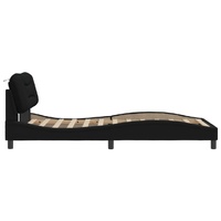 Get a better restful night's sleep from this bed frame with headboard! It makes a welcoming addition to any bedroom. Durable fabric: The fabric features a simple and clean look, and is breathable and durable.Plywood slats: The plywood slats provide good weight distribution, ensuring that the mattress stays in place with every twist and turn of your body during sleep.Excellent support: The headboard pillow is stuffed with foam for ultra-soft and optimal comfort, providing you with excellent back support while you're sitting up in bed to read or watch TV.Convenient design: The cushion headboard has a zipper for easy installation, and the hook-and-loop fasteners on the back can be used to secure the LED lights.Waved side design: The waved look of the bed frame is stylish and sophisticated, adding a modern and elegant touch to your decor, making it the focal point of your bedroom. Good to know:A mattress is not included with this bed. We do offer a various selection of mattresses. You can check our shop for a matching mattress.