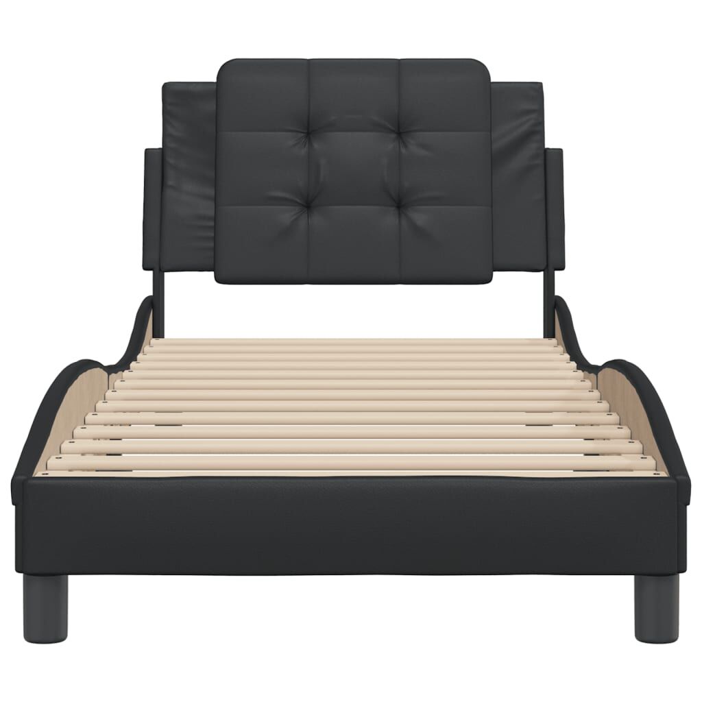 Get a better restful night's sleep from this bed frame with headboard! It makes a welcoming addition to any bedroom. Durable faux leather: Premium faux leather is a highly durable material. It is resistant to stain, making it easy to clean with a damp cloth. The smooth surface also gives a luxurious look and the beauty of real leather.Plywood slats: The plywood slats provide good weight distribution, ensuring that the mattress stays in place with every twist and turn of your body during sleep.Excellent support: The headboard pillow is stuffed with foam for ultra-soft and optimal comfort, providing you with excellent back support while you're sitting up in bed to read or watch TV.Convenient design: The cushion headboard has a zipper for easy installation, and the hook-and-loop fasteners on the back can be used to secure the LED lights.Waved side design: The waved look of the bed frame is stylish and sophisticated, adding a modern and elegant touch to your decor, making it the focal point of your bedroom. Good to know:A mattress is not included with this bed. We do offer a various selection of mattresses. You can check our shop for a matching mattress.