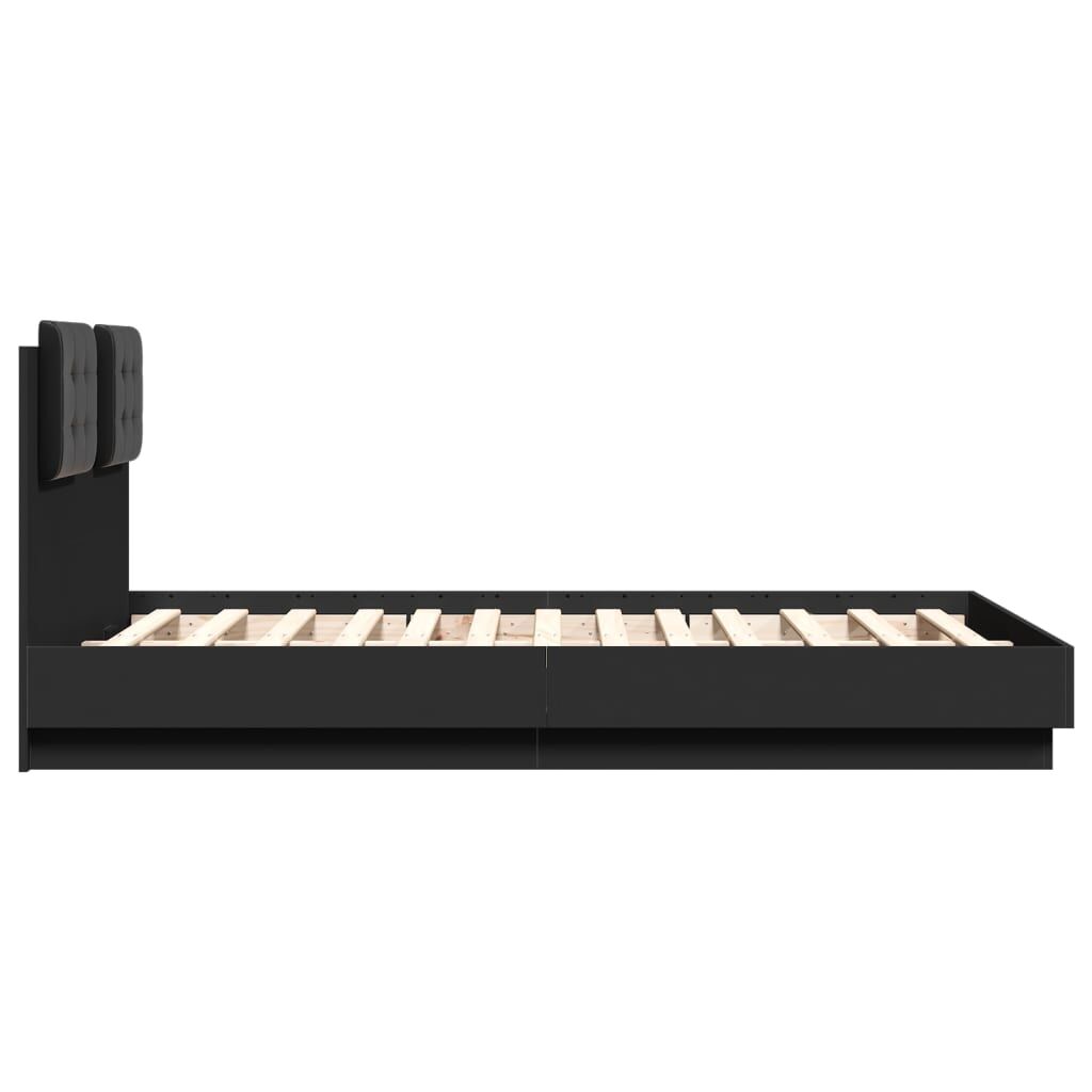 Get a better restful night's sleep from this bed frame with headboard! It makes a welcoming addition to any bedroom. Durable material: The engineered wood is of exceptional quality with smooth surface and also features strength, stability and resistance to moisture.Plywood slats: The plywood slats provide good weight distribution, ensuring that the mattress stays in place with every twist and turn of your body during sleep.Excellent support: The headboard pillow is stuffed with foam for ultra-soft and optimal comfort, providing you with excellent back support while you're sitting up in bed to read or watch TV. Good to know:A mattress is not included with this bed. We do offer a various selection of mattresses. You can check our shop for a matching mattress.