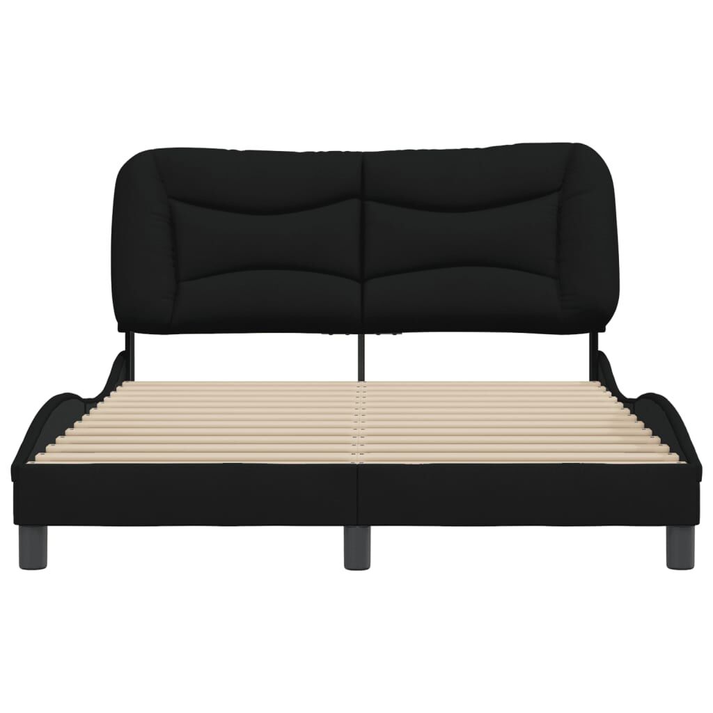 Get a better restful night's sleep from this bed frame with headboard! It makes a welcoming addition to any bedroom. Durable fabric: The fabric features a simple and clean look, and is breathable and durable.Plywood slats: The plywood slats provide good weight distribution, ensuring that the mattress stays in place with every twist and turn of your body during sleep.Excellent support: The headboard pillow is stuffed with foam for ultra-soft and optimal comfort, providing you with excellent back support while you're sitting up in bed to read or watch TV.Convenient design: The cushion headboard has a zipper for easy installation, and the hook-and-loop fasteners on the back can be used to secure the LED lights.Waved side design: The waved look of the bed frame is stylish and sophisticated, adding a modern and elegant touch to your decor, making it the focal point of your bedroom. Good to know:A mattress is not included with this bed. We do offer a various selection of mattresses. You can check our shop for a matching mattress.