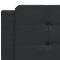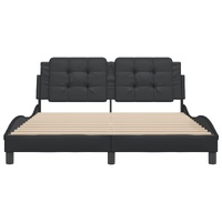Get a better restful night's sleep from this bed frame with headboard! It makes a welcoming addition to any bedroom. Durable faux leather: Premium faux leather is a highly durable material. It is resistant to stain, making it easy to clean with a damp cloth. The smooth surface also gives a luxurious look and the beauty of real leather.Plywood slats: The plywood slats provide good weight distribution, ensuring that the mattress stays in place with every twist and turn of your body during sleep.Excellent support: The headboard pillow is stuffed with foam for ultra-soft and optimal comfort, providing you with excellent back support while you're sitting up in bed to read or watch TV.Convenient design: The cushion headboard has a zipper for easy installation, and the hook-and-loop fasteners on the back can be used to secure the LED lights.Waved side design: The waved look of the bed frame is stylish and sophisticated, adding a modern and elegant touch to your decor, making it the focal point of your bedroom. Good to know:A mattress is not included with this bed. We do offer a various selection of mattresses. You can check our shop for a matching mattress.