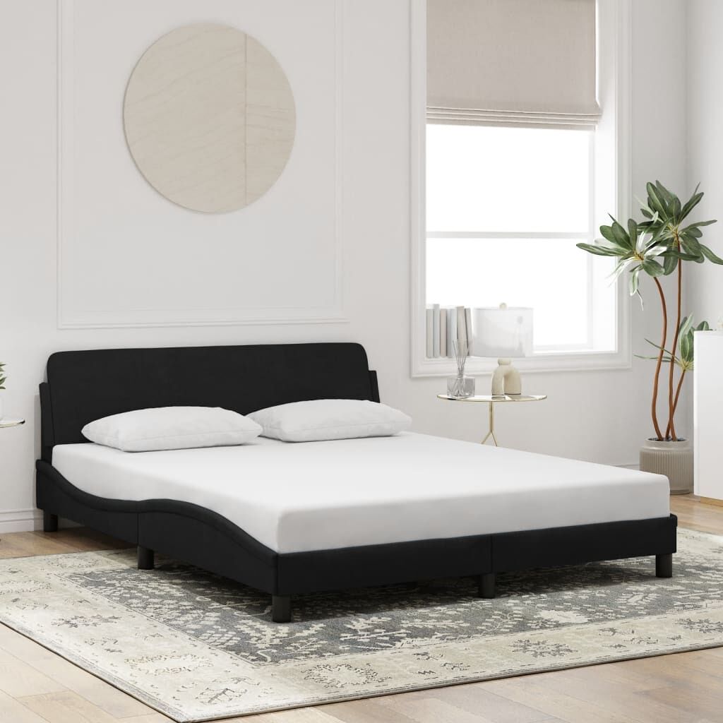 Get a better restful night's sleep from this bed frame with headboard! It makes a welcoming addition to any bedroom. Soft velvet: Velvet is a soft and comfortable fabric that feels nice against the skin.Supportive legs: The bed is supported by sturdy legs, which ensure its stability, safety and firmness.Plywood slats: The plywood slats provide good weight distribution, ensuring that the mattress stays in place with every twist and turn of your body during sleep.Excellent support: The bed header provides you with excellent back support while you're sitting up in bed to read or watch TV.Waved side design: The waved look of the bed frame is stylish and sophisticated, adding a modern and elegant touch to your decor, making it the focal point of your bedroom. Good to know:A mattress is not included with this bed. We do offer a various selection of mattresses. You can check our shop for a matching mattress.