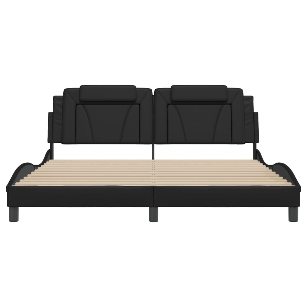 Get a better restful night's sleep from this bed frame with headboard! It makes a welcoming addition to any bedroom. Durable faux leather: Premium faux leather is a highly durable material. It is resistant to stain, making it easy to clean with a damp cloth. The smooth surface also gives a luxurious look and the beauty of real leather.Plywood slats: The plywood slats provide good weight distribution, ensuring that the mattress stays in place with every twist and turn of your body during sleep.Excellent support: The headboard pillow is stuffed with foam for ultra-soft and optimal comfort, providing you with excellent back support while you're sitting up in bed to read or watch TV.Waved side design: The waved look of the bed frame is stylish and sophisticated, adding a modern and elegant touch to your decor, making it the focal point of your bedroom. Good to know:A mattress is not included with this bed. We do offer a various selection of mattresses. You can check our shop for a matching mattress.