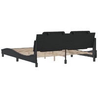 Get a better restful night's sleep from this bed frame with headboard! It makes a welcoming addition to any bedroom. Durable faux leather: Premium faux leather is a highly durable material. It is resistant to stain, making it easy to clean with a damp cloth. The smooth surface also gives a luxurious look and the beauty of real leather.Plywood slats: The plywood slats provide good weight distribution, ensuring that the mattress stays in place with every twist and turn of your body during sleep.Excellent support: The headboard pillow is stuffed with foam for ultra-soft and optimal comfort, providing you with excellent back support while you're sitting up in bed to read or watch TV.Convenient design: The cushion headboard has a zipper for easy installation, and the hook-and-loop fasteners on the back can be used to secure the LED lights.Waved side design: The waved look of the bed frame is stylish and sophisticated, adding a modern and elegant touch to your decor, making it the focal point of your bedroom. Good to know:A mattress is not included with this bed. We do offer a various selection of mattresses. You can check our shop for a matching mattress.