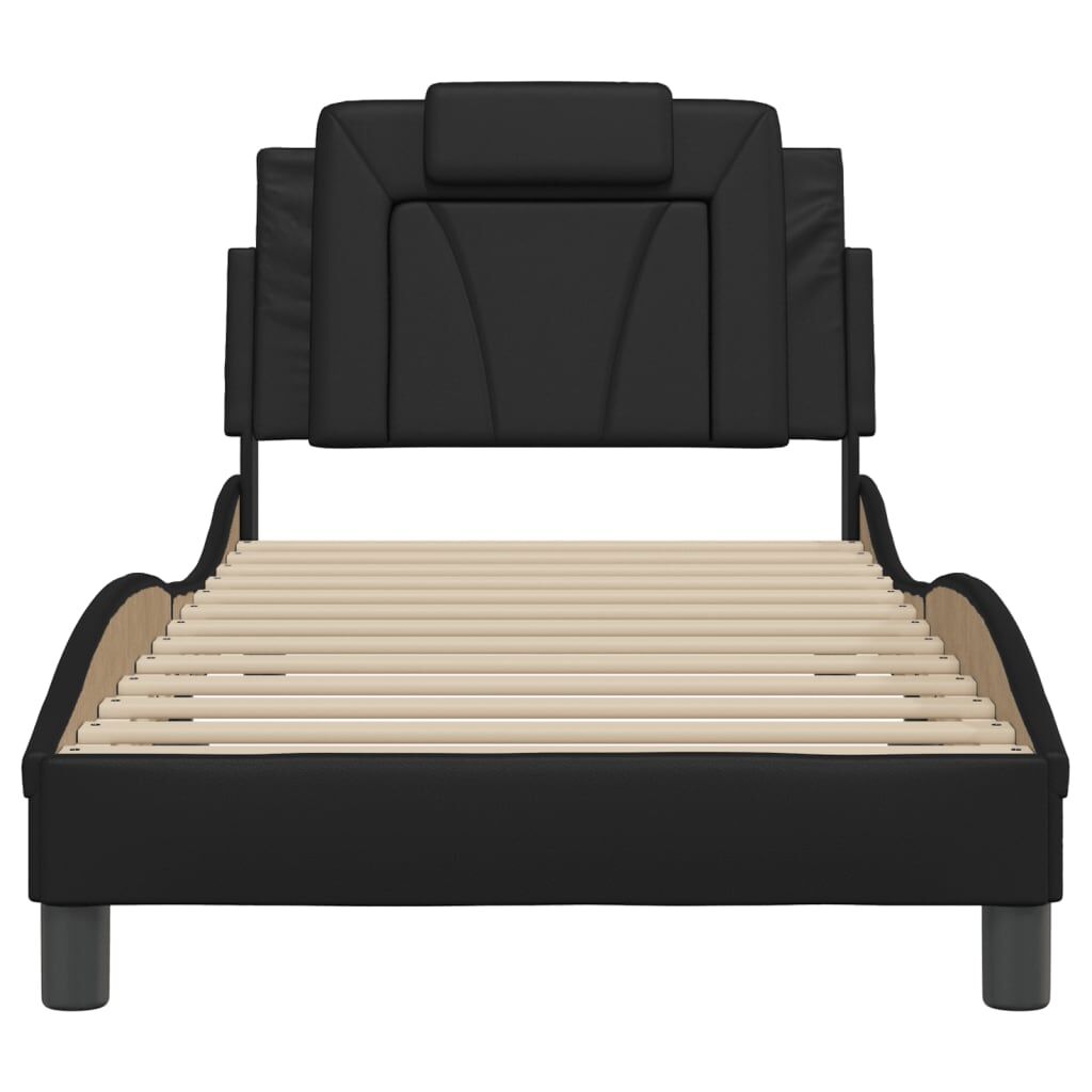 Get a better restful night's sleep from this bed frame with headboard! It makes a welcoming addition to any bedroom. Durable faux leather: Premium faux leather is a highly durable material. It is resistant to stain, making it easy to clean with a damp cloth. The smooth surface also gives a luxurious look and the beauty of real leather.Plywood slats: The plywood slats provide good weight distribution, ensuring that the mattress stays in place with every twist and turn of your body during sleep.Excellent support: The headboard pillow is stuffed with foam for ultra-soft and optimal comfort, providing you with excellent back support while you're sitting up in bed to read or watch TV.Waved side design: The waved look of the bed frame is stylish and sophisticated, adding a modern and elegant touch to your decor, making it the focal point of your bedroom. Good to know:A mattress is not included with this bed. We do offer a various selection of mattresses. You can check our shop for a matching mattress.