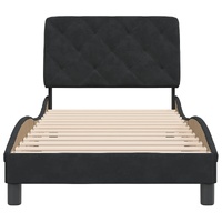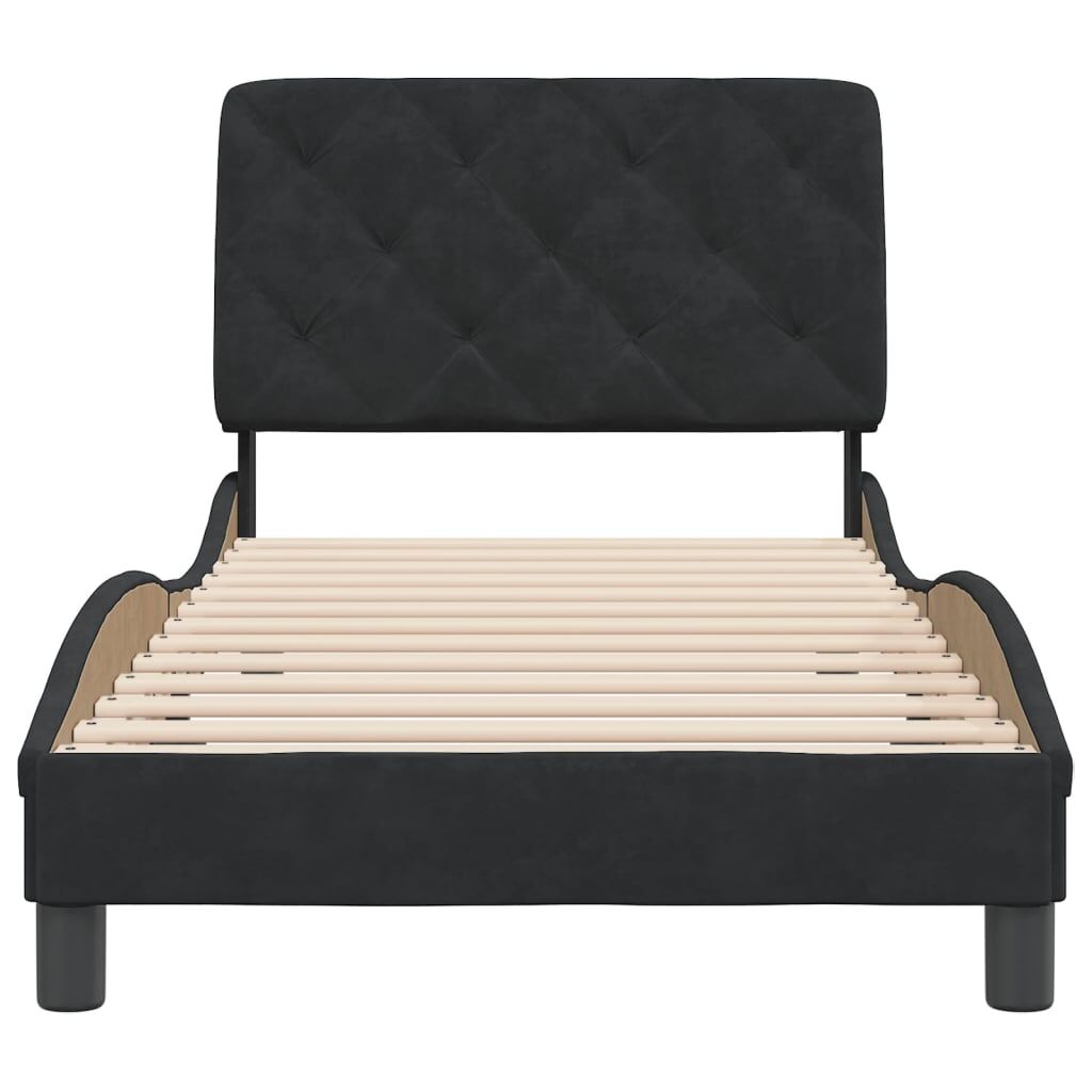 Get a better restful night's sleep from this bed frame with headboard! It makes a welcoming addition to any bedroom. Soft velvet: Velvet is a soft and comfortable fabric that feels nice against the skin.Plywood slats: The plywood slats provide good weight distribution, ensuring that the mattress stays in place with every twist and turn of your body during sleep.Excellent support: The headboard pillow is stuffed with foam for ultra-soft and optimal comfort, providing you with excellent back support while you're sitting up in bed to read or watch TV.Convenient design: The cushion headboard has a zipper for easy installation, and the hook-and-loop fasteners on the back can be used to secure the LED lights.Waved side design: The waved look of the bed frame is stylish and sophisticated, adding a modern and elegant touch to your decor, making it the focal point of your bedroom. Good to know:A mattress is not included with this bed. We do offer a various selection of mattresses. You can check our shop for a matching mattress.
