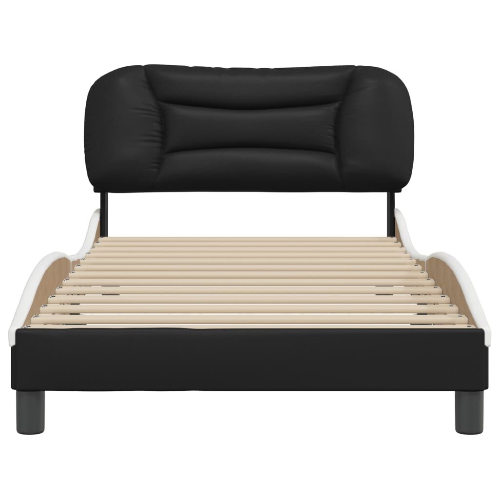 Get a better restful night's sleep from this bed frame with headboard! It makes a welcoming addition to any bedroom. Durable faux leather: Premium faux leather is a highly durable material. It is resistant to stain, making it easy to clean with a damp cloth. The smooth surface also gives a luxurious look and the beauty of real leather.Plywood slats: The plywood slats provide good weight distribution, ensuring that the mattress stays in place with every twist and turn of your body during sleep.Excellent support: The headboard pillow is stuffed with foam for ultra-soft and optimal comfort, providing you with excellent back support while you're sitting up in bed to read or watch TV.Convenient design: The cushion headboard has a zipper for easy installation.Waved side design: The waved look of the bed frame is stylish and sophisticated, adding a modern and elegant touch to your decor, making it the focal point of your bedroom. Good to know:A mattress is not included with this bed. We do offer a various selection of mattresses. You can check our shop for a matching mattress.